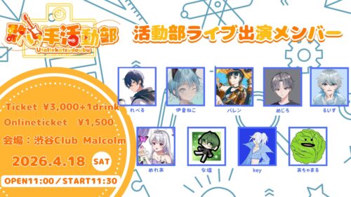 ※VIP特典準備のためLivePocketの整理番号が分かるスクリーンショットと、ラミネートチケットに記載希望のお名前を事前にお送りください。本名でなく、ハンドルネーム・ニックネームで問題ありません。